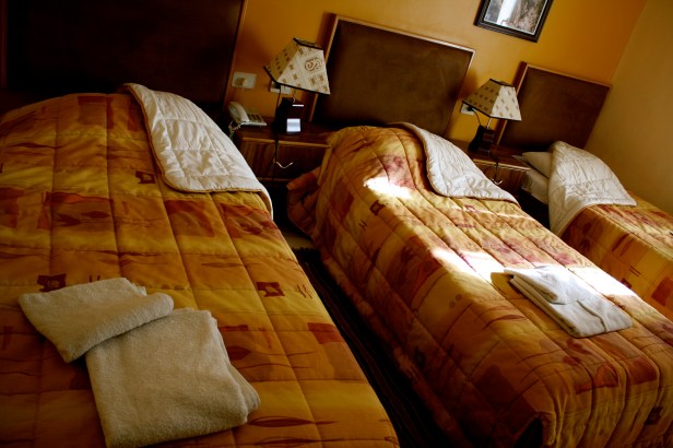 Getting back to Amman, we were dropped at a bus station. Not having the best clue of where we were, and E being somewhat intimidated by the taxi drivers, we asked the police at the bus stop for the bus to Madaba. We did manage to get on the right one, and ended up in Madaba bus station one hour later. We then transferred on a taxi, that brought us to Mariam Hotel . It was definitely a great call on E’s part! Although it was marketed as a two-star establishment, it definitely felt like more than two-stars. A family-run establishment, it definitely had a very, very homely feeling. We walked into a lobby with a Christmas tree, and a very nice, welcoming seating area with comfy-looking sofas. Rates were decent, and we paid about 90 USD for a triple room (this was near Christmas, btw), and this included breakfast. Apart from the welcoming lobby, I also loved the rooms and the floor we were on (3rd, I think). It was painted in yellow and orange, and gave a really warm feeling. The rooms were clean, and big, and had a little balcony. In addition to all that, they have really reliable drivers, who charged extremely fair rates for driving us around. We signed up for a tour of Bethany-beyond-Jordan and the Dead Sea with them for the next day.