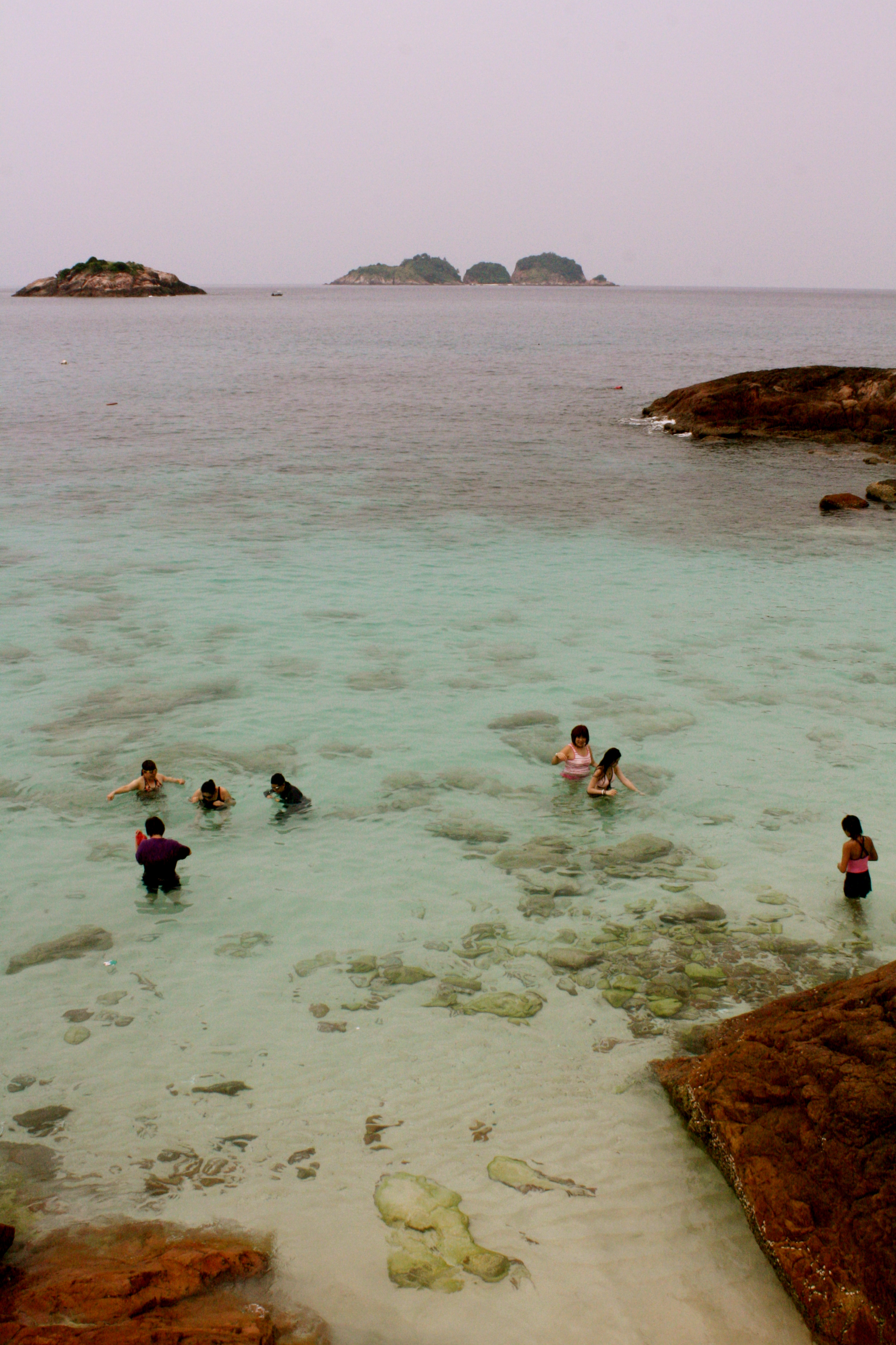 Courtesy of the generous parents, we went on a cruise with Star Cruises to Pulau Redang. We got a balcony room near the front of the boat, which was totally sweet, and I did spend some of the (non-rainy) mornings sitting there, reading while gazing at the South China Sea. Well, the main stop for this trip was Pulau Redang. Having heard much about this beach on the east coast of Peninsula Malaysia, and not having been to the east coast, I was excited about this.